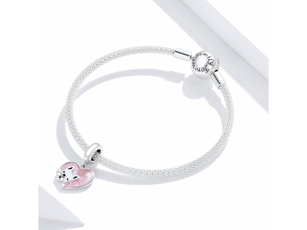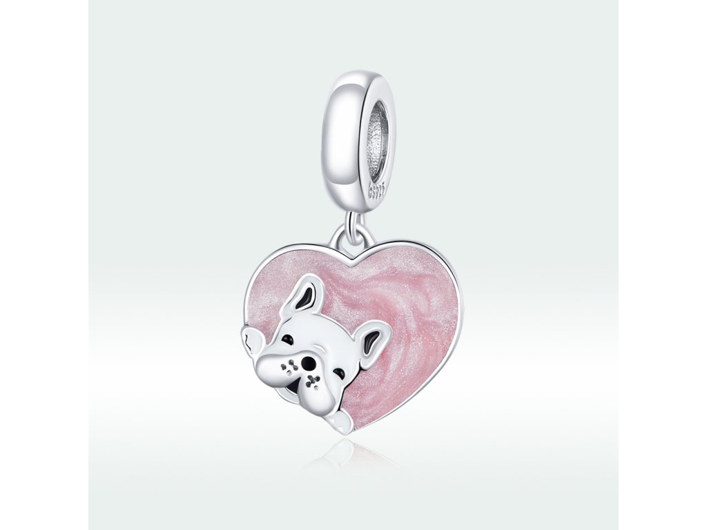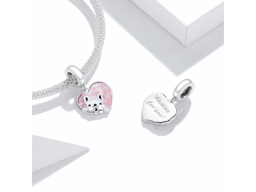 - Stříbrný visací přívěsek ve tvaru srdce s motivem milovaného pejska. Přívěsek je zdoben ručně nanášenou třpytivou růžovou glazurou. Zadní strana přívěsku je obohacena anglickým textem "Waiting for you" v překladu "Čekám na tebe". Originální design přívěsku, kvalitní zpracování a materiál, ručně dohotovené.