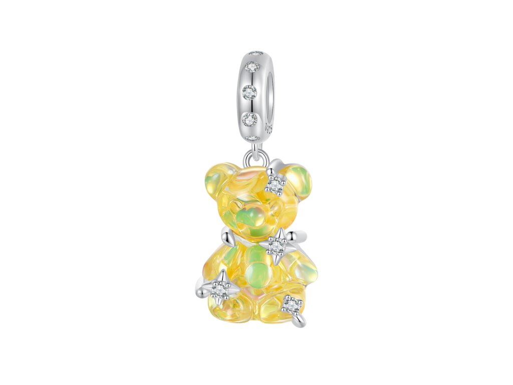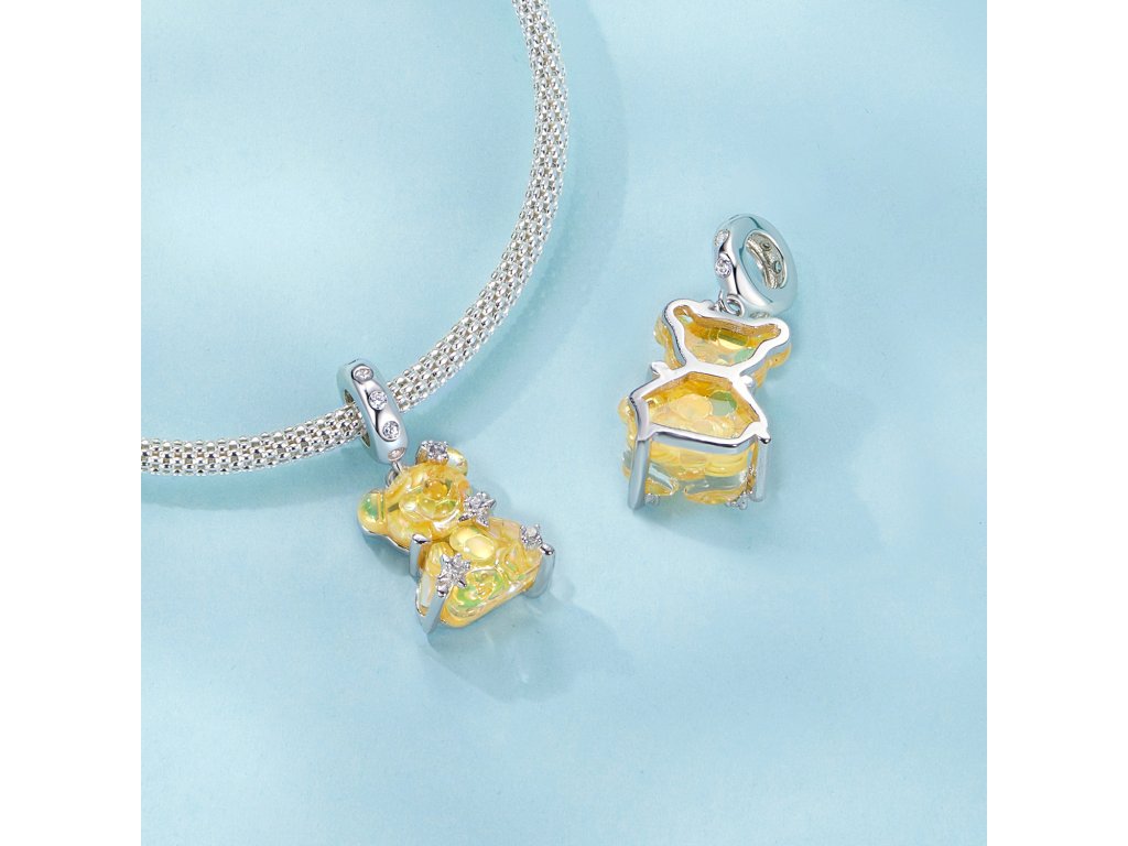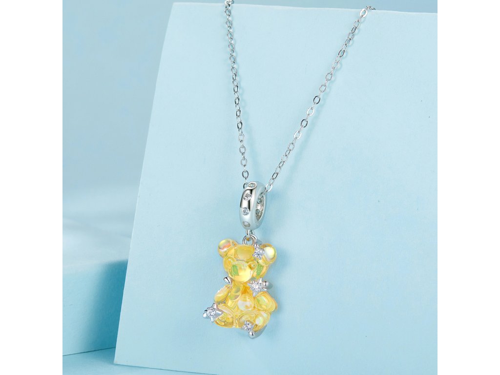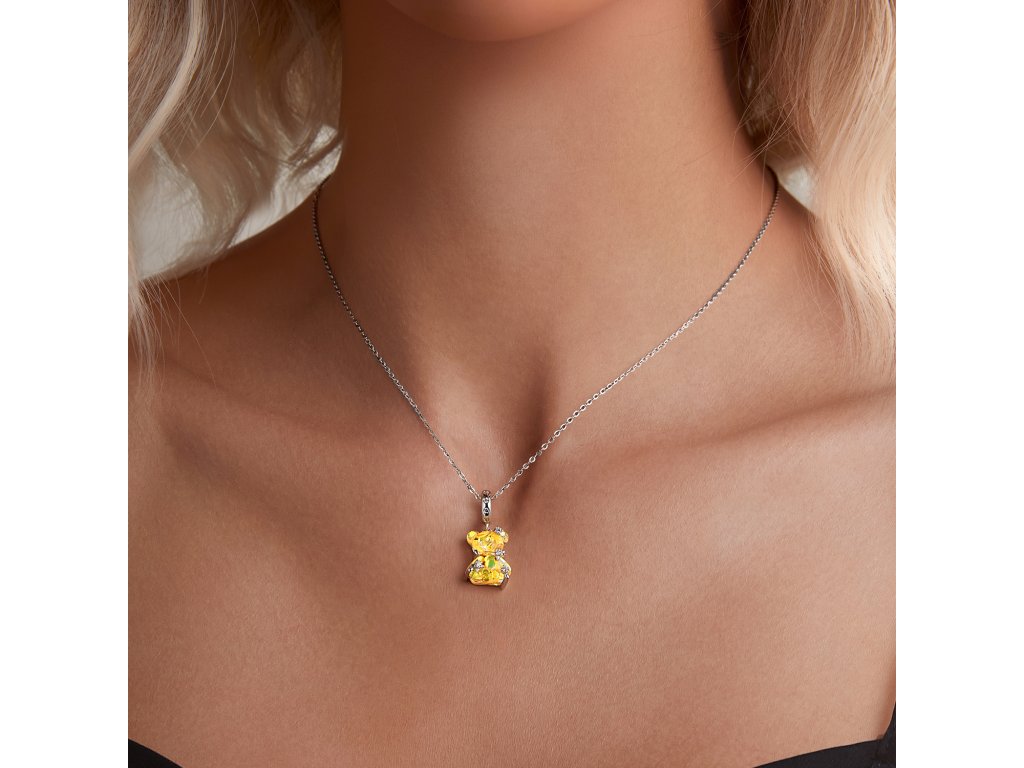 Stříbrný visací přívěsek v designu žlutého medvídka zdobeného zirkony. Precizně zpracovaný z kvalitního sterlingového stříbra.