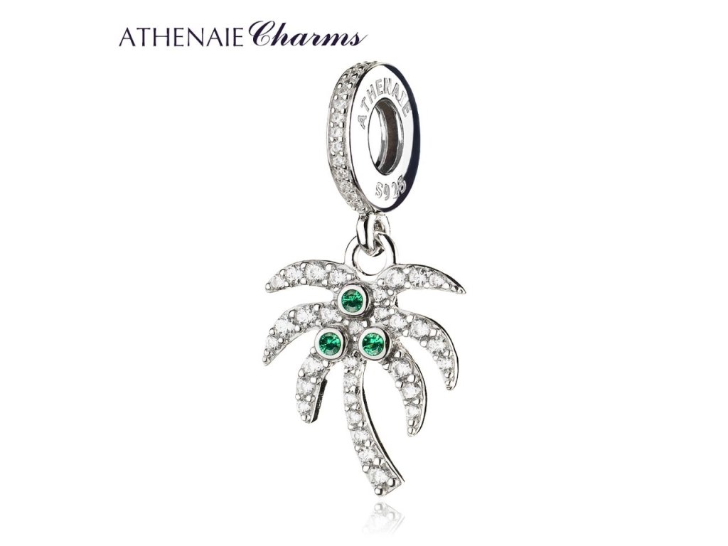 - Luxusní stříbrný visací přívěsek ve tvaru palmy obohacené zirkony čiré a zelené barvy. Originální design přívěsku, kvalitní zpracování a materiál, ručně dohotovené.