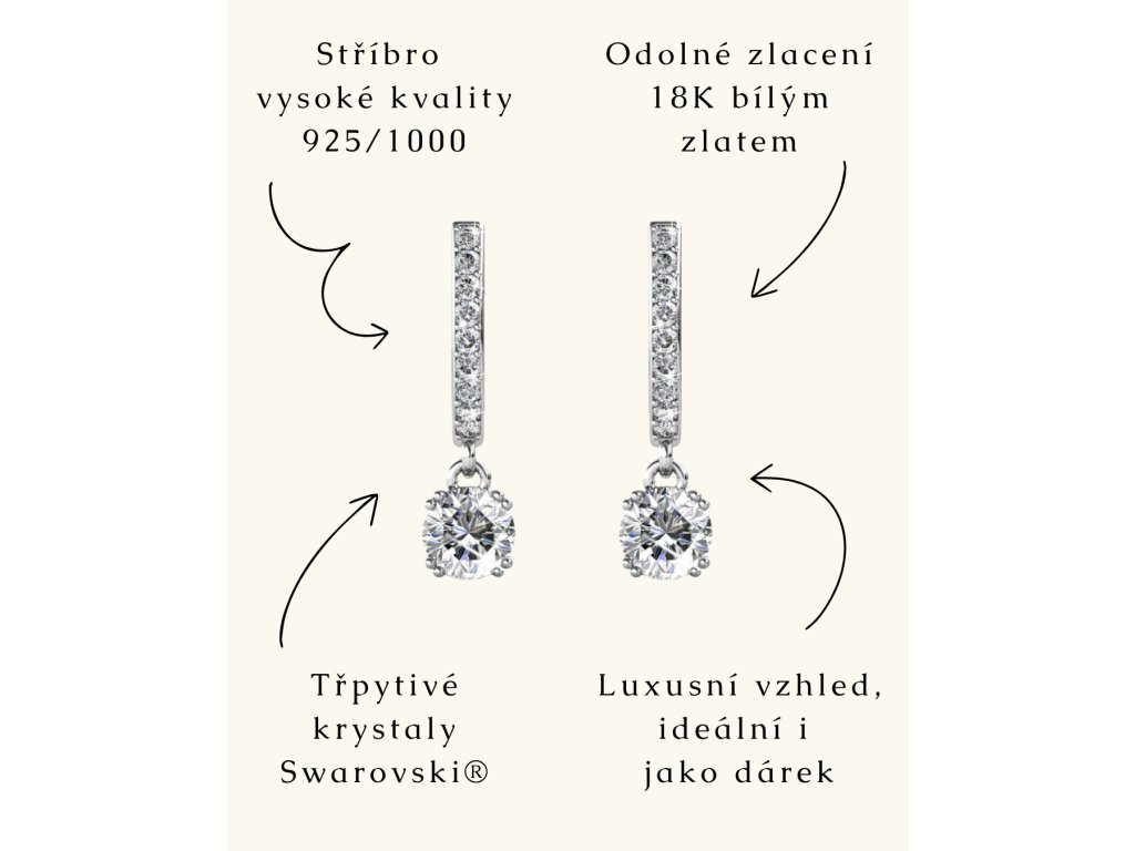 - Stříbrné visací náušnice pozlacené 18 karátovým bílým zlatem zdobené krystaly Swarovski. Originální design náušnic, kvalitní zpracování a materiál, ručně dohotovené.