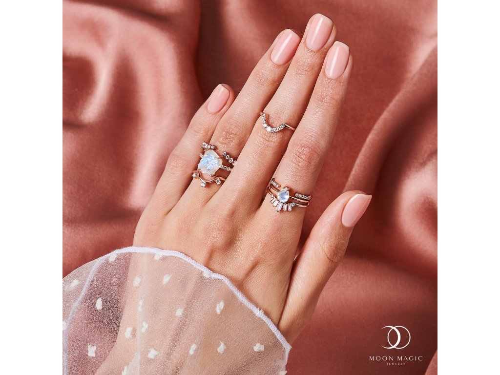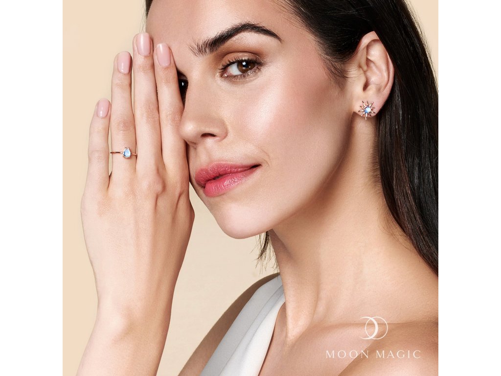 Přirozená krása a duhovost autentického drahokamu - měsíčního kamene je zdůrazněna tímto jedinečným designem.